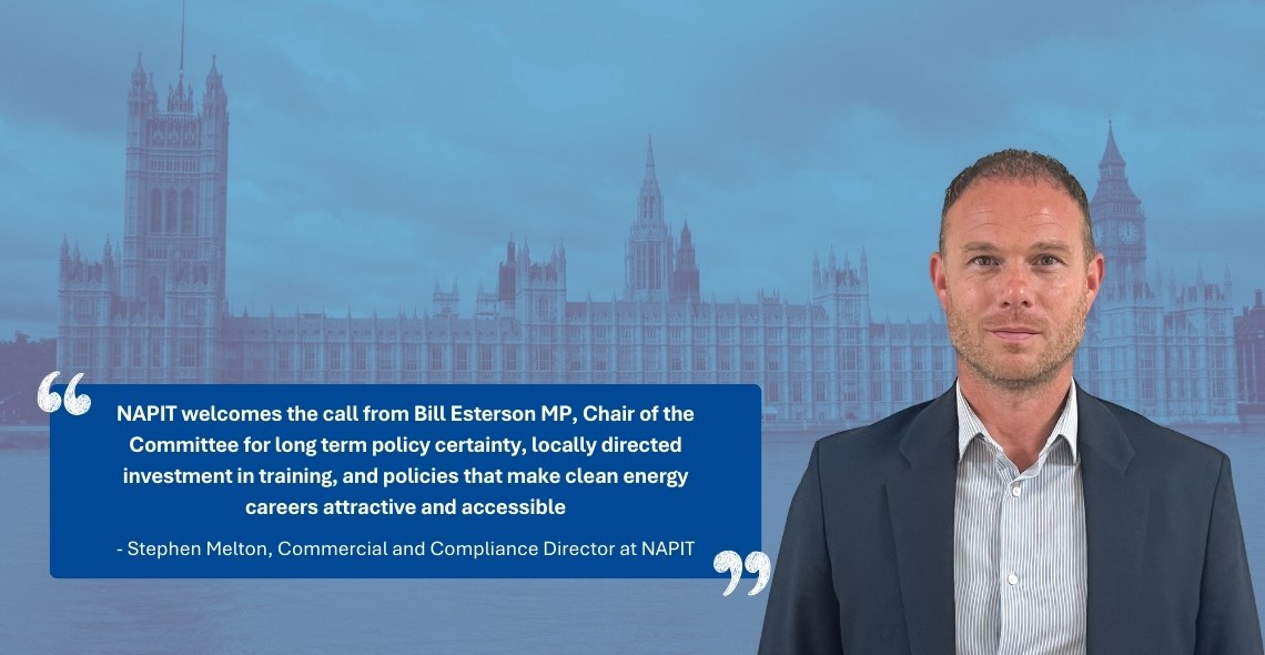 “NAPIT welcomes the call from Bill Esterson MP, Chair of the Committee for long term policy certainty, locally directed investment in training, and policies that make clean energy careers attractive and accessible. We would also echo the committee’s recommendations calling on Government to clarify its stance on how environmental levies will be paid for in future schemes and what role they will play in electricity and gas bill costs and also promptly bringing forward the Warm Homes Plan, setting out its estimate of workforce needs and how those needs will be met.”